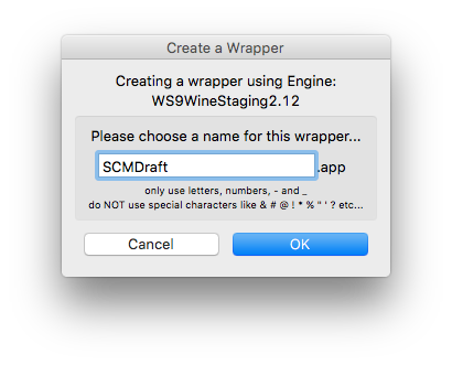 - Open the wrapper, since we have not installed anything into it, it will launch a setup interface (if it doesn't want to launch, or you need to get back to the setup interface after SCMDraft is installed, hold the Alt/Option key while launching the wrapper)